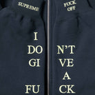 SUPREME IDGAF ZIP UP HOODED SWEATSHIRT NAVY