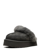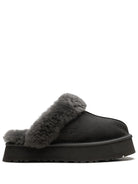 UGG Disquette Slipper Black (W) – klasyczne kapcie w eleganckiej czerni, które łączą komfort z modnym designem. Wysoka podeszwa nadaje im nowoczesny wygląd, a puszyste wykończenie zapewnia ciepło i wygodę. Idealne zarówno do domu, jak i casualowych stylizacji na co dzień!