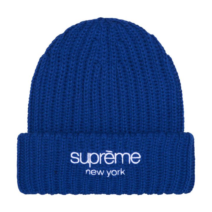 SUPREME CHUNKY RIB CLASSIC LOGO BEANIE BLUE