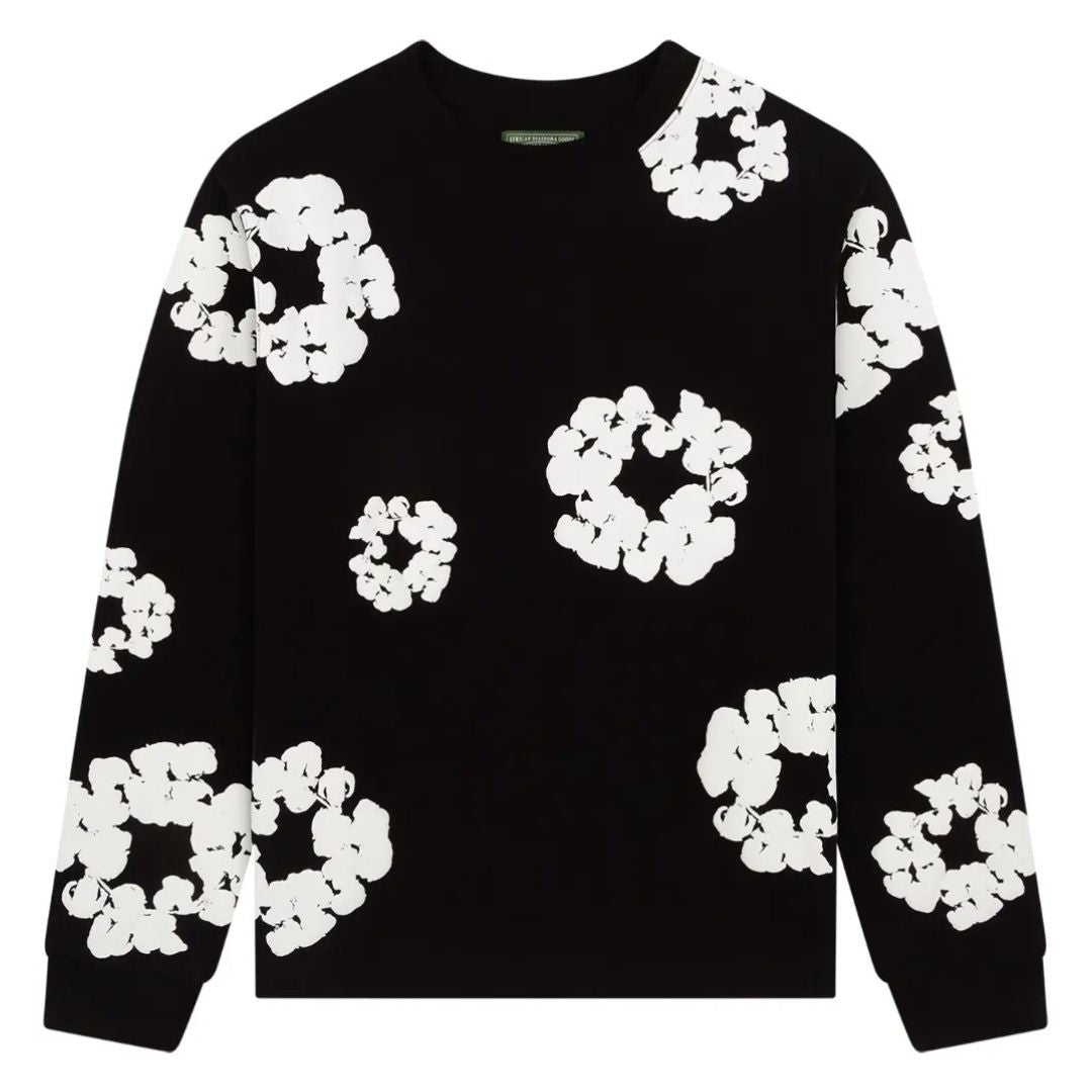 Denim Tears Long Sleeve Cotton Wreath T-Shirt Black – czarny longsleeve z charakterystycznym wzorem wieńców bawełnianych. Kultowy design w minimalistycznym wydaniu – idealny na każdą porę roku.