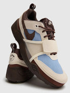 Nike Zoom Field Jaxx Travis Scott Leche Blue to futurystyczne sneakersy zaprojektowane we współpracy z Travisem Scottem. Połączenie błękitu, brązu i beżu przyciąga wzrok, a niestandardowa konstrukcja z paskiem i masywną podeszwą sprawia, że buty wyróżniają się zarówno stylem, jak i funkcjonalnością.
