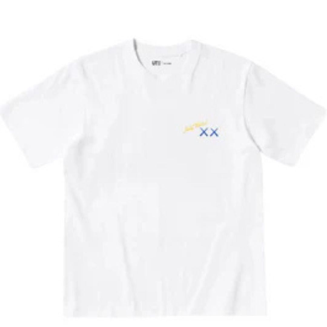 KAWS x Uniqlo x Andy Warhol Banana Tee to unikalna kolaboracja łącząca ikonicznego BFF w wersji KAWS z pop-artowym bananem Warhola. Biała koszulka z wyrazistym printem na plecach, idealna dla fanów sztuki i streetwearu.