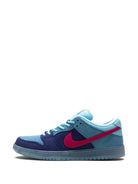 Nike SB Dunk Low Run The Jewels to wyjątkowa kolaboracja z hip-hopowym duetem Run The Jewels, łącząca unikalny design z wyrazistą kolorystyką. Cholewka wykonana jest z wysokiej jakości zamszu w odcieniach błękitu i granatu, uzupełnionych kontrastującym różowym Swooshem. Charakterystyczne detale, takie jak złote akcenty na pięcie nadają butom ekskluzywnego wyglądu. Model ten to doskonały wybór dla fanów streetwearu oraz muzyki, łączący styl z wygodą codziennego użytkowania.