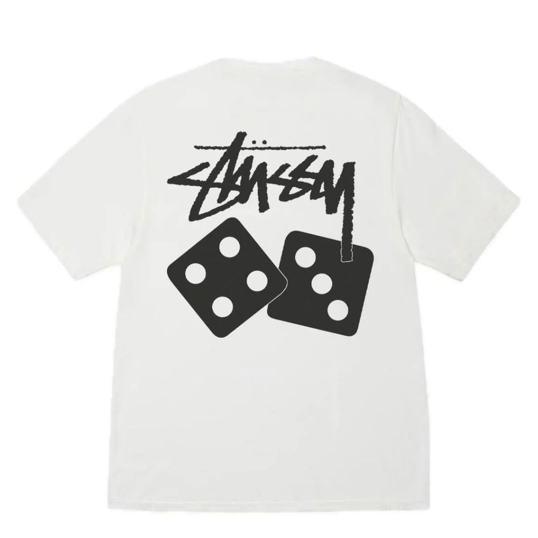 Stüssy Dice Tee White to klasyczny T-shirt z wyrazistym nadrukiem kości i logotypem Stüssy na plecach. Wersja pigment dyed nadaje mu vintage’owy charakter, a minimalistyczny front dopełnia całości. Idealny wybór dla fanów streetwearowej estetyki z pazurem.