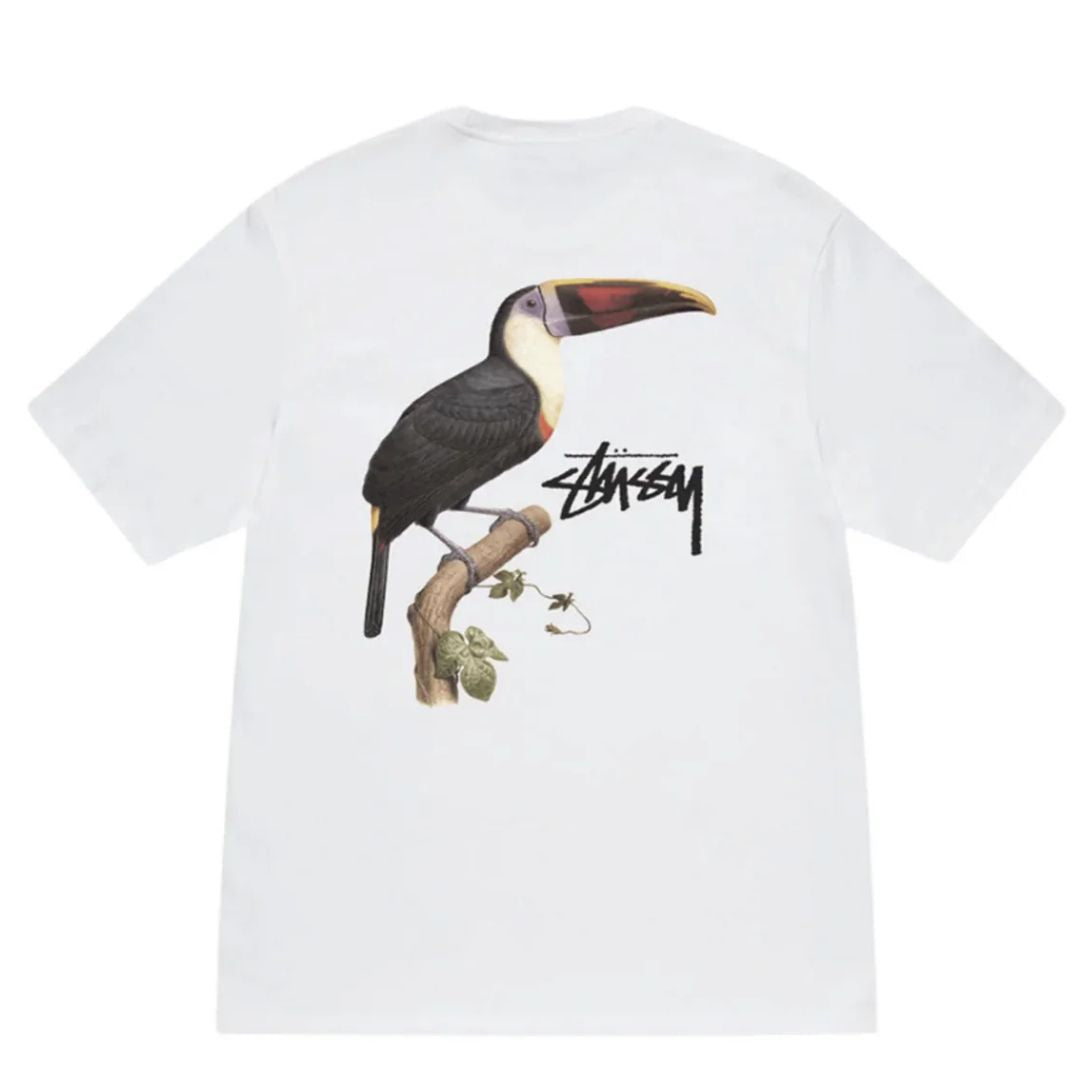 Stüssy Toucan Tee White to letni klasyk z egzotycznym twistem. Biały T-shirt z wyrazistym nadrukiem tukana i logo Stüssy na plecach, uzupełniony o subtelny branding z przodu. Must-have dla miłośników streetwearu z charakterem.