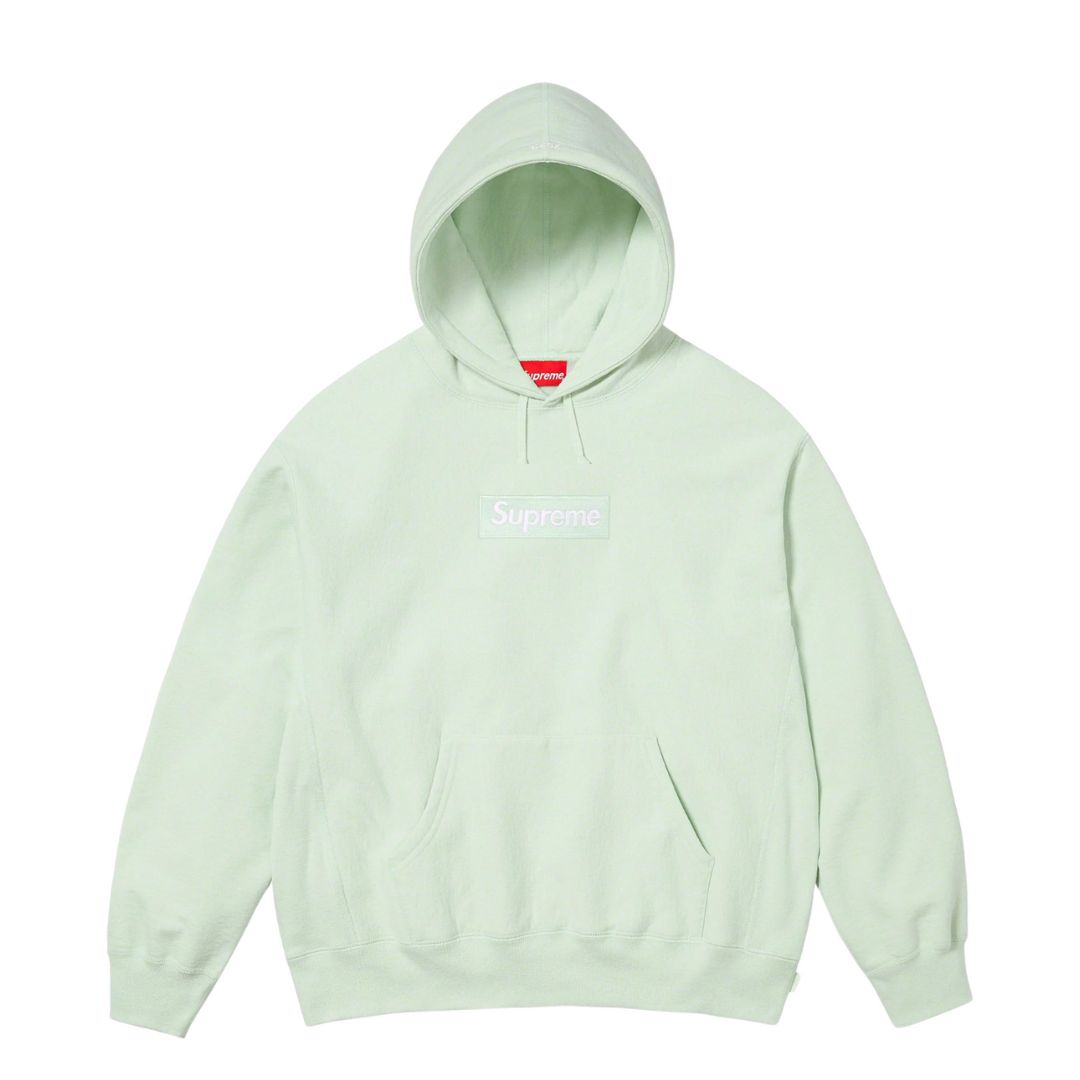 Supreme Box Logo Hooded Sweatshirt (FW23) Light Green – kultowa bluza z białym box logo w delikatnym, pastelowozielonym odcieniu. Limitowana edycja FW23, idealna na wiosnę i lato. Świeży akcent w każdej streetwearowej garderobie.