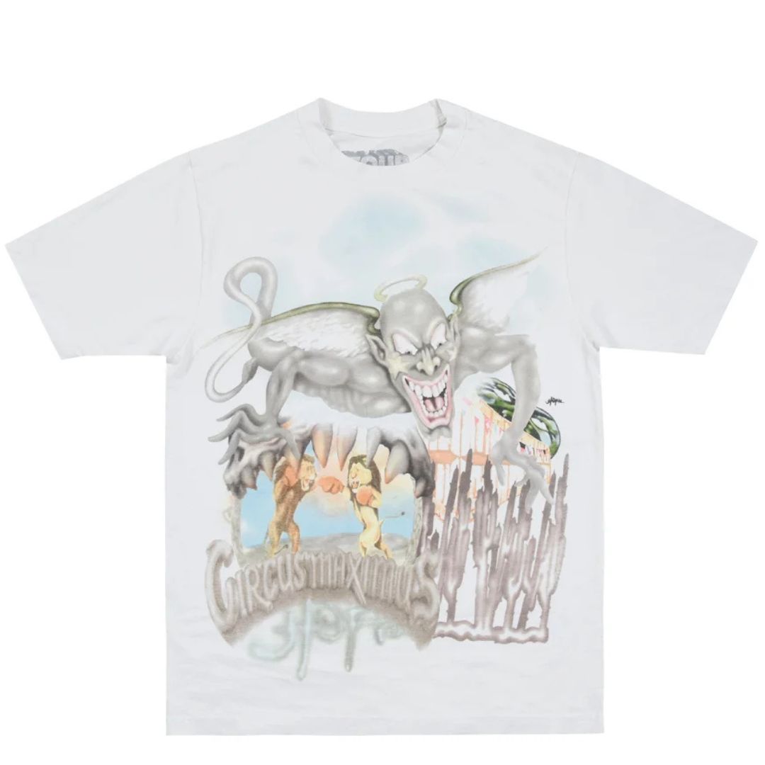 T-shirt Travis Scott “Goblin” to odważny projekt promujący trasę Tour 2024. Charakterystyczne grafiki z przodu i tyłu koszulki tworzą unikalny, nieco kreskówkowy klimat, który przyciąga spojrzenia i świetnie wpisuje się w estetykę merchu rapera.