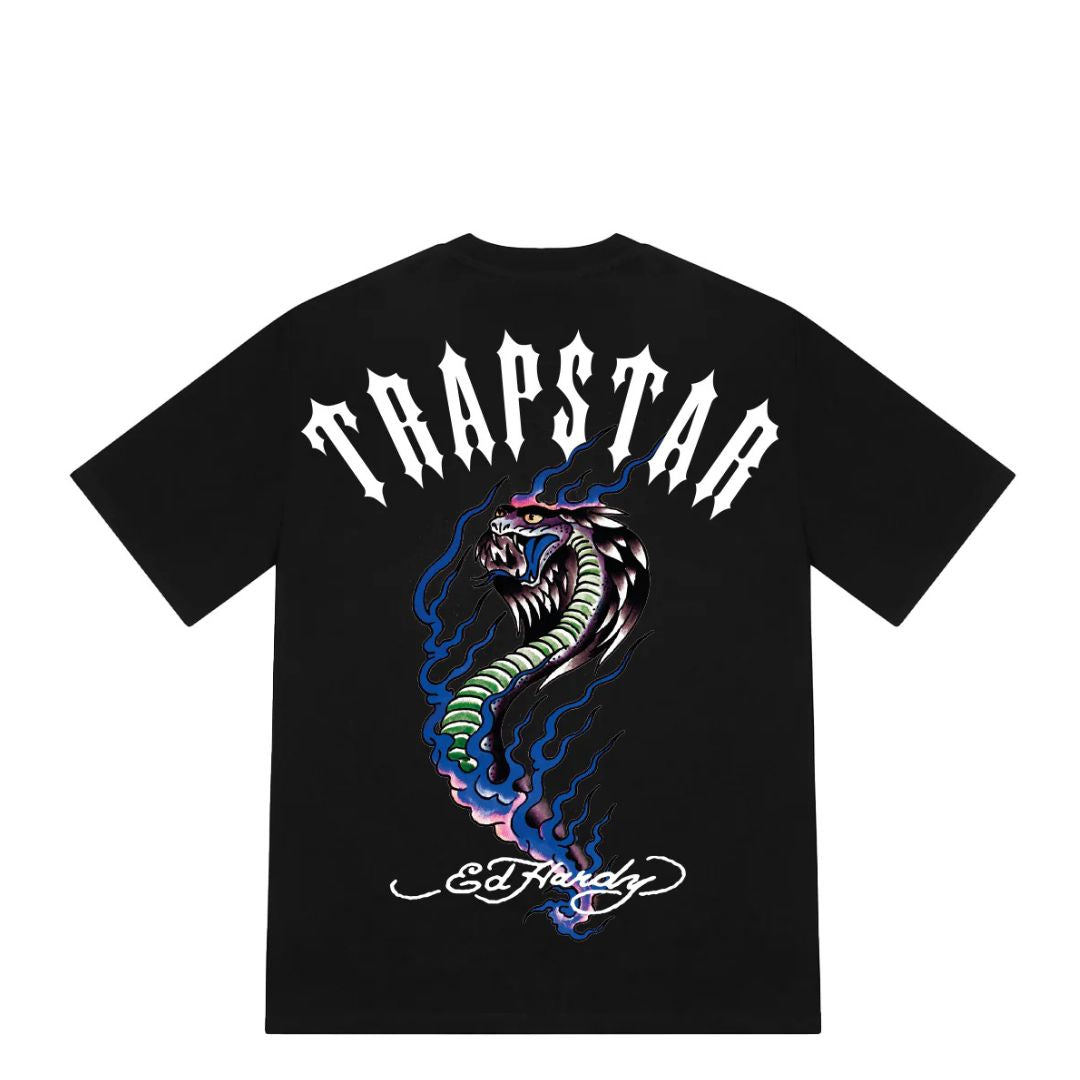 TRAPSTAR X ED HARDY FLAME SNAKE TEE BLACK