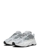 Yeezy 700 V2 Static to klasyczny model z serii 700, który łączy masywną sylwetkę z nowoczesnym stylem i maksymalnym komfortem. Cholewka, wykonana z przewiewnej siateczki i zamszowych paneli, zapewnia trwałość oraz odpowiednią wentylację, co czyni buty idealnym wyborem na co dzień. Dynamiczny wygląd podkreślają odblaskowe detale, dodające im futurystycznego charakteru. Podeszwa z technologią Boost gwarantuje sprężystość, amortyzację i wygodę przy każdym kroku. Jasna, srebrzysto-szara kolorystyka „Static” nadaje butom elegancki i wszechstronny wygląd, pasujący do wielu stylizacji. To idealny wybór dla miłośników streetwearu ceniących połączenie stylu i funkcjonalności.